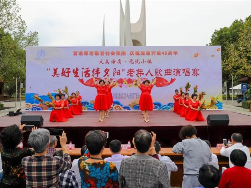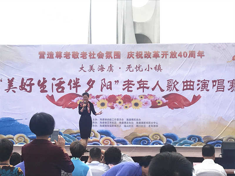 在重阳节到来之际,为弘扬尊老敬老的优良传统文化,丰富老年人精神文化生活,10月15日,由海虞镇老龄工作委员会、镇民政办主办,王市社区、镇文化站、新市民分中心承办的“大美海虞·无忧小镇——美好生活伴夕阳”老年人歌曲演唱赛在初心广场举行,近60名老人登台竞唱,共同迎接自己的节日。