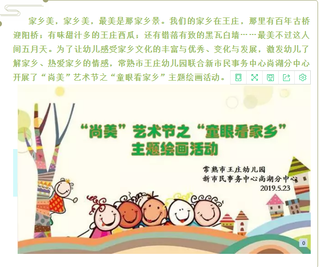 为让幼儿感受家乡文化的丰富与优秀、变化与发展,激发幼儿热爱家乡的情感,近日,尚湖新市民分中心联合王庄幼儿园开展了“尚美”艺术节之“童眼看家乡”主题绘画活动。