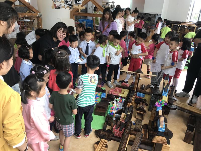 活动以“快乐建构,美丽东南”为主题,首先让幼儿在白纸上画出心中的建筑,完成建构草图,然后运用架空、垒高等技巧搭建出梦想中的城市建筑。孩子们欢笑着奔向建构区,仔细寻找自己需要的建构材料,通过与新同伴的互助合作,建构心中美丽东南的特色建筑和景点。他们一个个聚精会神,俨如一个个真正的建筑师,沉浸在创作中;很快,一件件精造型美、富有创意的作品出炉了,拉丁舞房、别墅、小花园,各具特色的建构作品,令参观者目不暇接,赞不绝口。孩子们纷纷展示出自己的得意作品,成功的喜悦溢于言表。活动最后,大家在百果树前合影留念。
