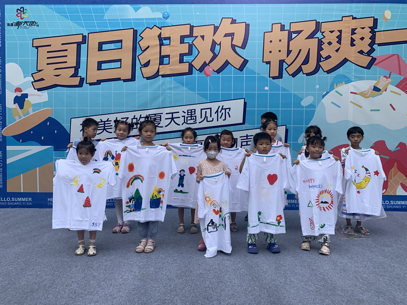 活动现场,在工作人员的带领下,爸爸和孩子们积极参与活动。不一会,红花、绿草、手掌、太阳等有趣的图案出现在T恤上,多彩的图案加上缤纷的创意,让一件件原本普普通通的T恤瞬间漂亮无比。孩子们借助画笔,在特殊的节日表达了对爸爸特殊的爱。
