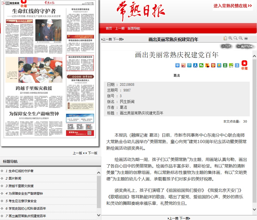 6月8日《常熟日报》报道《画出美丽常熟庆祝建党百年》 (东南分中心)